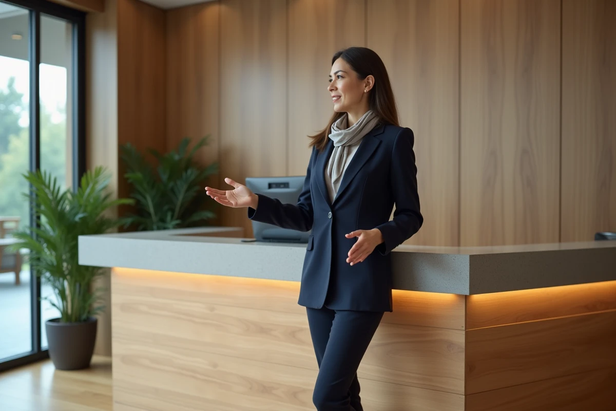 Le choix des couleurs est crucial pour créer une ambiance accueillante. Des teintes comme le bleu ou le vert apportent calme et sérénité, tandis que le rouge ou l’orange stimulent l’énergie. Combinés à une signalétique claire, ces choix renforceront l’identité visuelle de votre entreprise. Ajoutez des éléments de signalétique sur le comptoir pour guider les visiteurs de manière fluide et efficace.